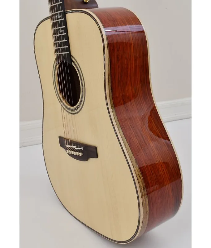 Эта акустическая гитара Takamine Custom Shop SG-CPD-AC1 Dreadnought произведена в Японии с высоким уровнем детализации и качественными компонентами для отличного звука и художественного внешнего вида! Верхняя дека изготовлена из цельной лиственницы Адирондо́к, которая используется в очень дорогих коллекционных гитарах, обеспечивая красивый звук, который будет становиться только лучше со временем. Задняя дека и боковины выполнены из цельного коко́боло, что обеспечивает лучший баланс высоких и низких частот, а также впечатляющий визуальный эффект, который можно найти только в этой экзотической древесине высокого класса. Кантовка из кленового флейма для верхней и задней частей корпуса. Эта кастомная гитара Takamine также имеет цельный гриф из красного дерева, для изготовления которого требуется гораздо больший кусок древесины, и который встречается только на гитарах Custom Shop. Еще одной редкой особенностью этой кастомной гитары являются вставки из абалона «двойные сердца», которые (если мы не ошибаемся) встречаются всего на одной другой модели Takamine за пределами Японии! Верхняя часть головы грифа выполнена из той же древесины коко́боло, что и корпус, создавая гармоничный визуальный эффект» завораживающая тема. Пожалуйста, ознакомьтесь со всеми изображениями для получения дополнительной информации.