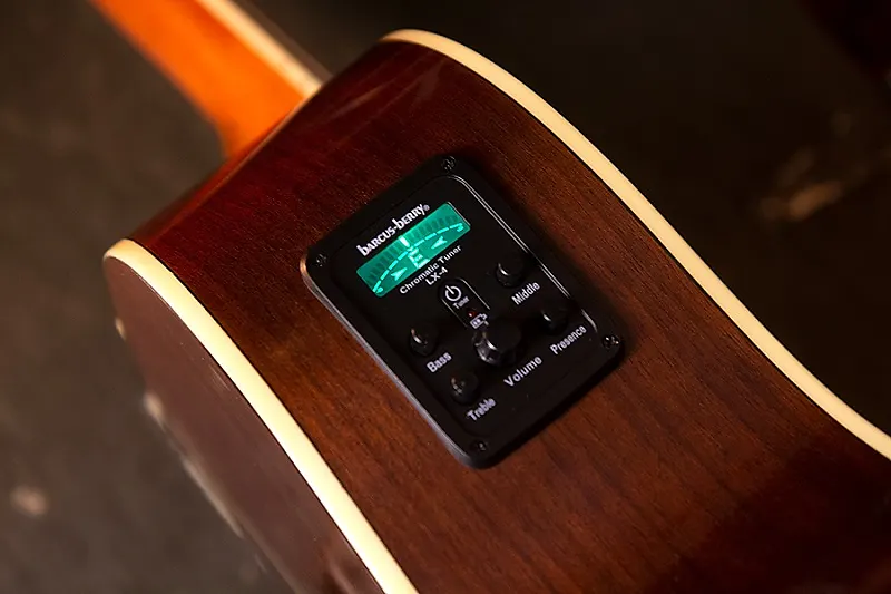 AG70CE - это акустическая гитара стиля Grand Auditorium с вырезом и фирменной системой звукоснимателей и тюнера Barcus-Berry LX4 для превосходного акустического звучания при подключении к усилителю. Выборная верхняя дека из ели и задняя дека с боковинами из ованкола обеспечивает отличную тональную проекцию. Гриф из красного дерева оснащен грифовой накладкой с смещенными точечными инкрустациями и головкой грифа с кленовой накладкой с хромированными литым колками. Система Barcus-Berry LX4 имеет 3-полосный эквалайзер, регулятор Presence и встроенный тюнер для быстрой и точной настройки.