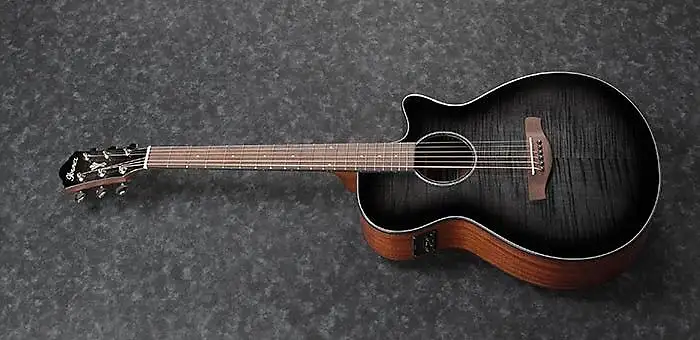 AEG, компактная корпусная электроакустическая гитара с тонкой грифовой частью, более двух десятилетий хорошо воспринимается за свою удобную игру. Ibanez с гордостью объявляет, что серия AEG была обновлена с модернизированной электроникой и новым дизайном. Изменения основаны на концепции простого и удобного управления. AEG70 оснащается новым предусилителем Ibanez AEQ-TTS. Маленький и простой предусилитель имеет только две ручки управления: громкость и форма звука. Этот интуитивно понятный контроль тональности обеспечивает естественное акустическое звучание в центральной позиции. Он позволяет музыкантам легко настраивать звук и переходить от низкого, насыщенного и мощного звучания к яркому и звонкому, регулируя лишь одну ручку. Новый легко читаемый встроенный тюнер с ЖК-дисплеем (жидкокристаллический дисплей) размещен на предусилителе. AEG70 оснащается упрощенной розеткой, окантовкой и декором на головке грифа. Эти мелкие детали добавляют гитаре острый и стильный облик. Другие особенности включают верхнюю дека из кленового фламинго и корпус из сапеле (спинка и боковины). корпус, пьезозвукосниматель Ibanez T-bar II Undersaddle, который выравнивает громкость каждой струны и обеспечивает хорошо сбалансированный сигнал, и специальные насадки Ibanez Advantage в форме лампочки для легкой установки струн