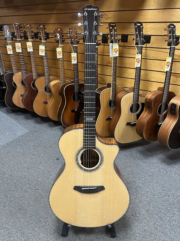 Гитара Breedlove Legacy Concerto CE с красивой верхней декой из ели Адирондак и отделкой из коха, оснащенная электроникой. Исключительная гитара во всех отношениях. Поставляется в жестком футляре. Доставка возможна по континентальной части США.