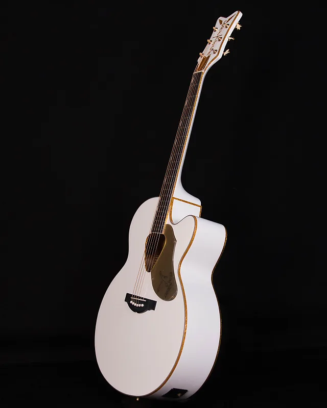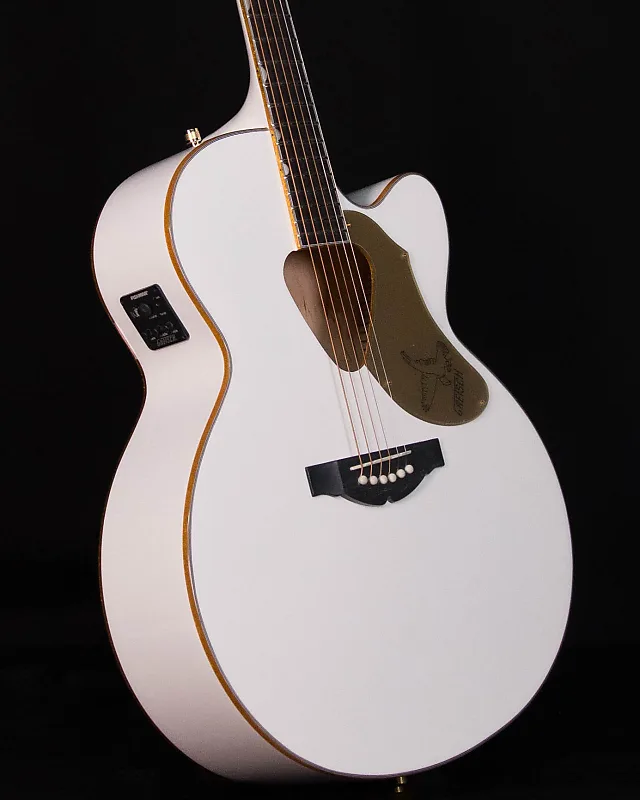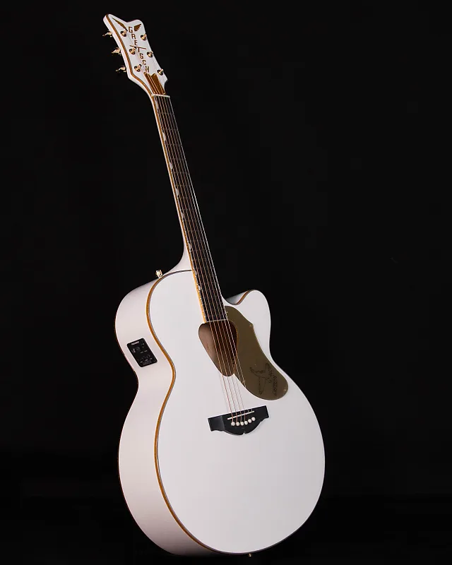 Акустико-электрическая гитара Gretsch White Falcon оснащена джамбо-корпусом с вырезом, включая ослепительно золотистую отделку на верхней и нижней деке, звуковом отверстии, грифе и головке грифа. Другие высококлассные особенности включают цельную ель в качестве верхней деки с фигурными ребрами жесткости «X» и классическим треугольным звуковым отверстием Rancher, кленовые верхние и изогнутые задние деки, гриф из махагони, 21 лад на накладке из розового дерева с инкрустацией Neo-Classic «thumbnail», головка грифа формы «V» с вертикальным сверкающим логотипом «Gretsch», компенсированный бридж с основанием из розового дерева, фурнитура премиум-класса и позолоченные механики. Пьезозвукосниматель Fishman Sonicore под седлом и предусилитель Isys+ обеспечивают отличное усиленное звучание и гибкий звуковой контроль с регулировкой громкости, тембра и фазы. управление, встроенный тюнер и индикатор заряда батареи.