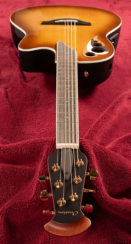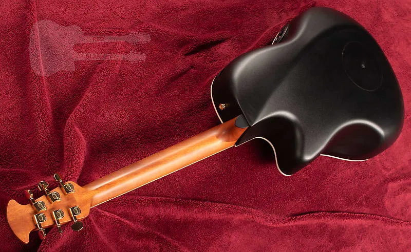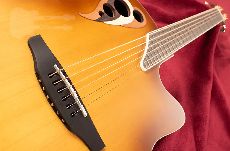 Массивная еловая верхняя дека, новейшая разработка крепления quintad Elite Многочисленные звуковые отверстия + боковые порты Глубокое тело Contour Lyrachord GS Гриф из нато, накладка и бридж из овангкола Мензура 643 мм (25,3"), ширина порожка 42,8 мм (1 11/16") Многоступенчатые наплечные накладки "Wave" из разных пород дерева Точки инкрустации Кремовые окантовки корпуса, многослойное оформление края Колки Ovation, золотые Звукосниматель Ovation CP-100 slimline, предусилитель OP-4CT с тюнером Доступ к анкерному стержню на головке грифа