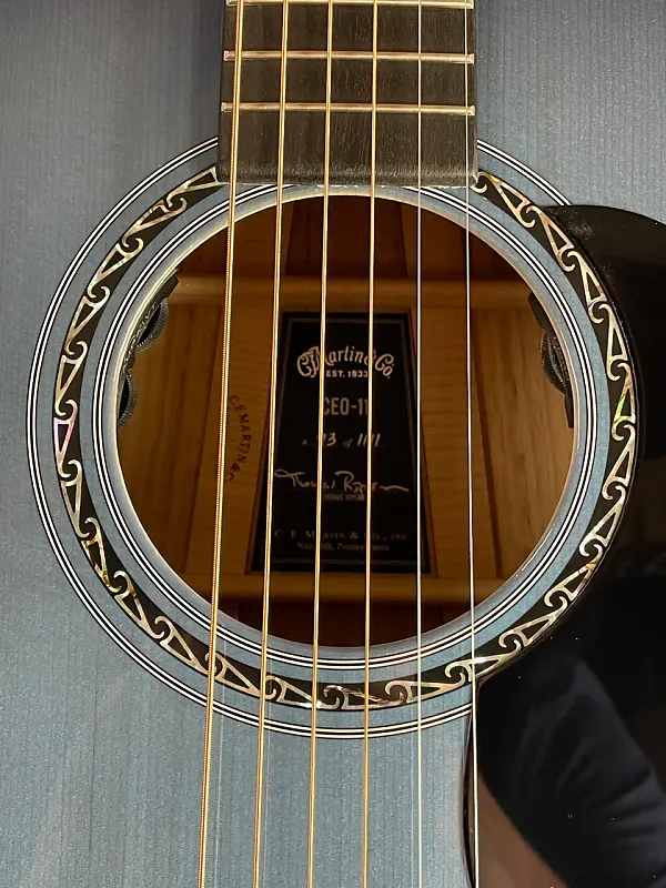 Благодаря легендарному соединению грифа с шипами «ласточкин хвост» от Martin и смещенной вперед волнообразной X-брэйсинг-системе, модель CEO-11 предлагает превосходную резонансность и дальнобойность. Фирменная электроника Fishman Aura VT Blend настроена в соответствии с предпочтениями Томаса Рипсама, обеспечивая аутентичный усиленный звук и сохраняя естественный акустический характер гитары. Уникальные элементы дизайна включают инкрустацию символа Unalome и характерную розетку, отражающие художественное видение, заложенное в эту шедевральную модель.