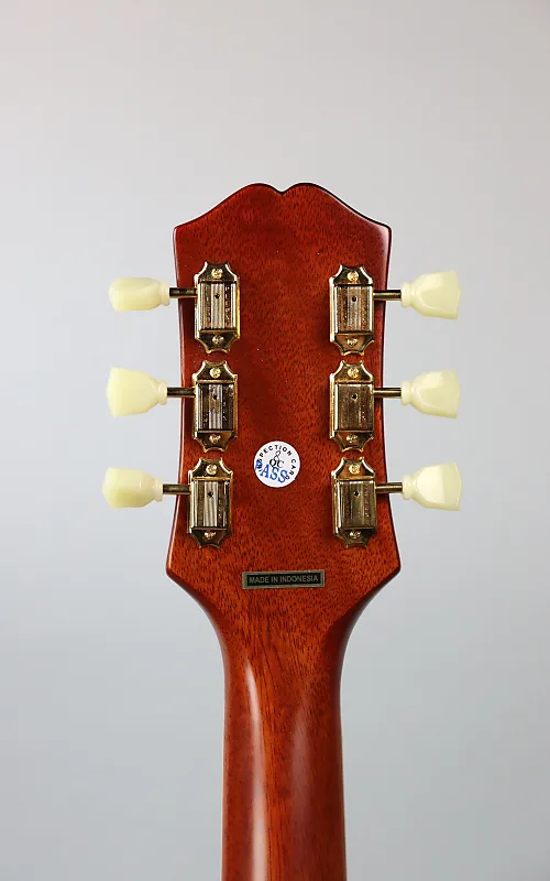 Оснащена золотыми колками Epiphone Deluxe, многослойной окантовкой верхней и задней деки, головкой грифа в стиле Kalamazoo, костью на верхнем порожке и седле.