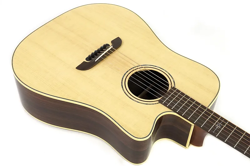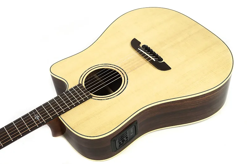 Верх: Дредноут с вырезом, цельная ель сорта AA - натуральный/глянцевый.