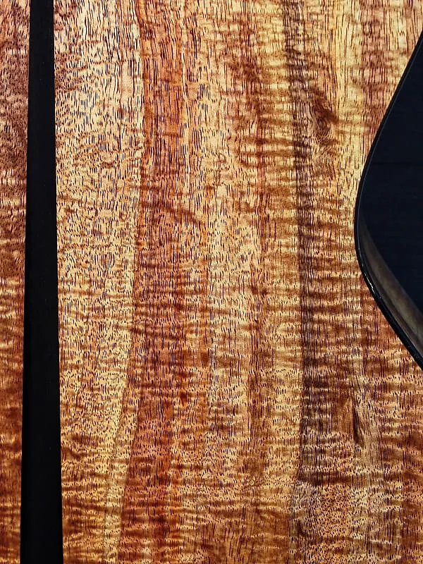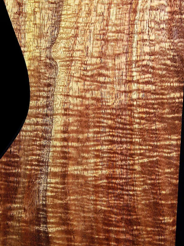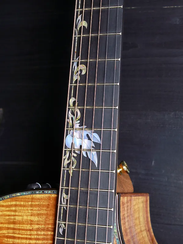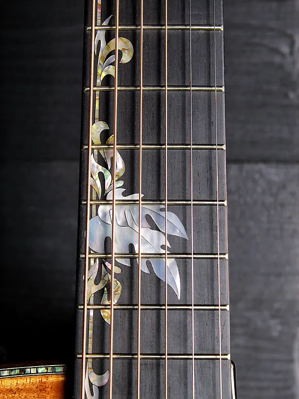 Детали высочайшего уровня включают выборочную абалоновую отделку крышки и розетку, с использованием западноафриканского эбена для грифа, подставки, окантовки и накладки на головке грифа. Изысканный мотив «Тропическая лиана», выполненный из отбранной абалоновой раковины и перламутра, добавляет к визуальному искусству этого инструмента-достояния.