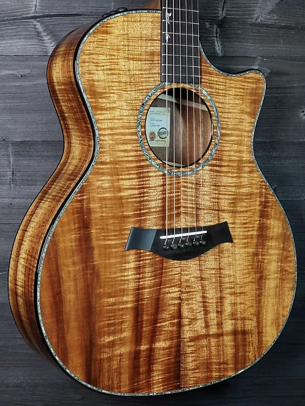 Исключительная кастомная гитара Grand Auditorium из высококачественного гавайского кoa с яркой текстурой древесины - изготовлена из дерева, выбранного вручную исключительно для нашего магазина. Наше 38-летнее партнерство с Taylor Guitars приносит свои бонусы, и это один из лучших наборов koa, которые мы когда-либо получали. Это настоящая музейная шедевральная работа от Taylor Custom Shop.