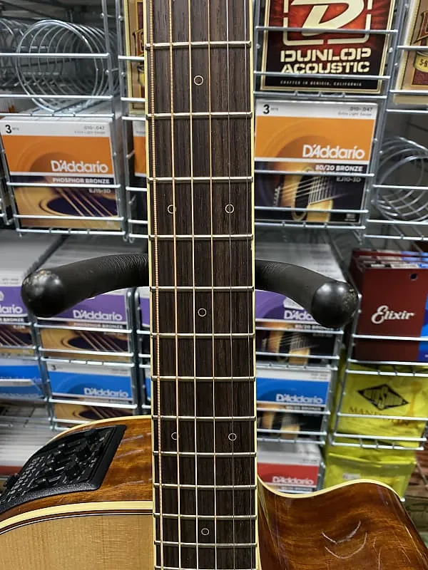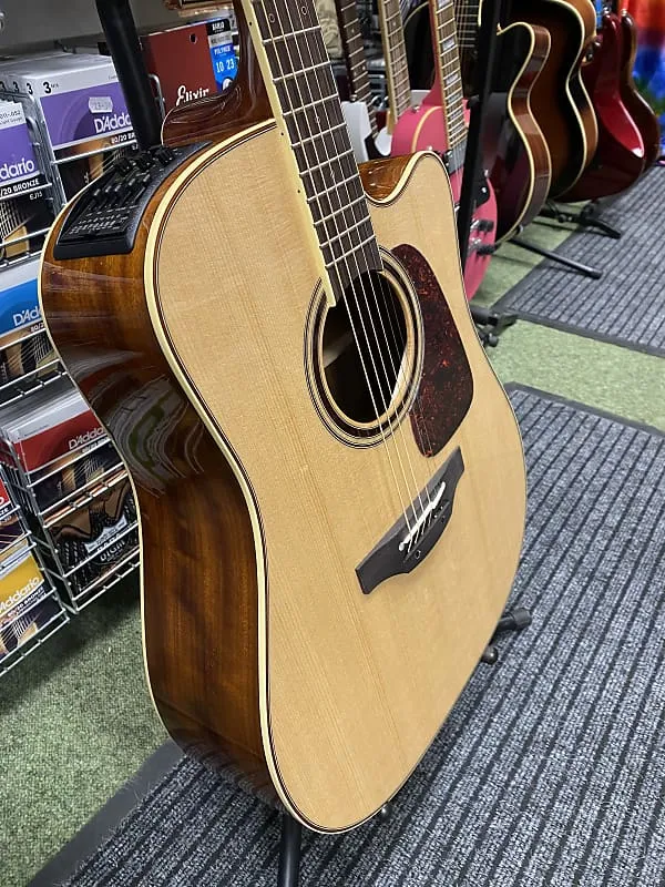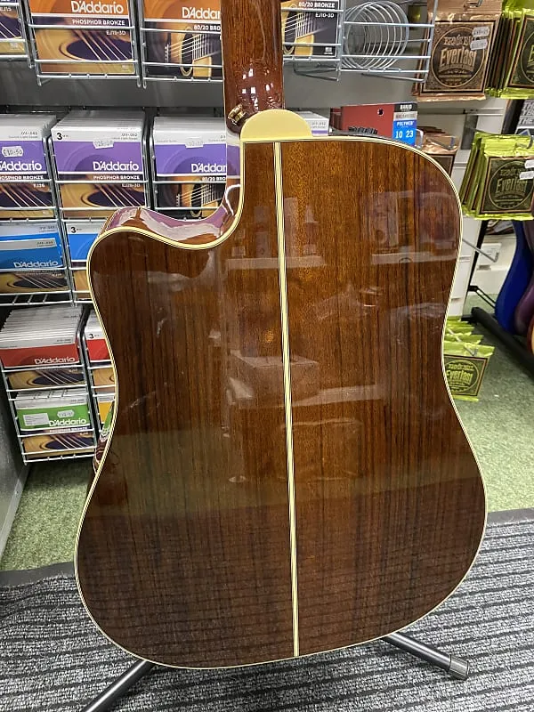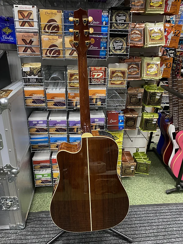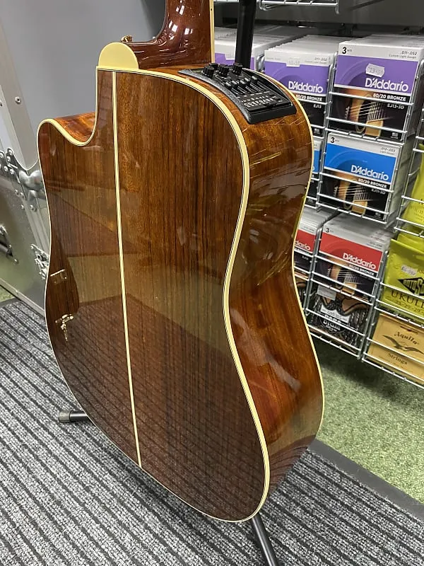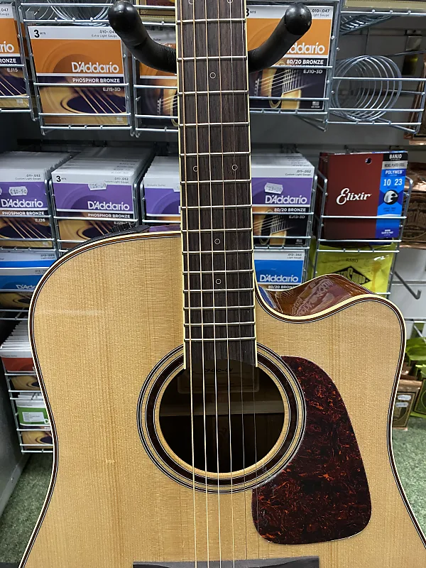 Форма корпуса: DREADNOUGHT CUTAWAY, верх: массив ели ситка, задняя дека: массив овангкола, обечайки: овангкол, гриф: махагони, мензура: 644 мм, грифовая доска: палисандр, ширина верхнего порожка: 42,5 мм, электроника: CTP-3, отделка: глянцевая натуральная, чехол: SH200A. Dreadnought - самая популярная форма корпуса за последние полвека, обеспечивающая сильный низ с большим объемом звучания.