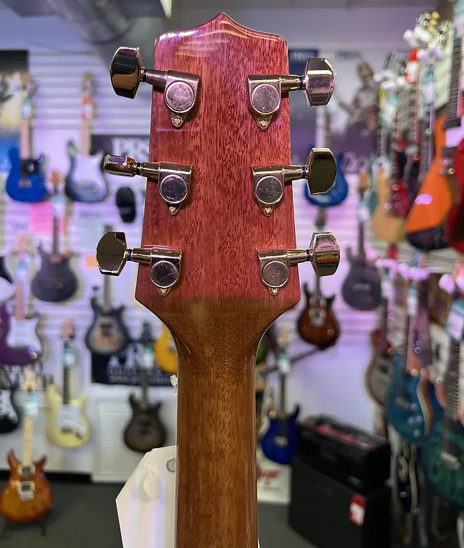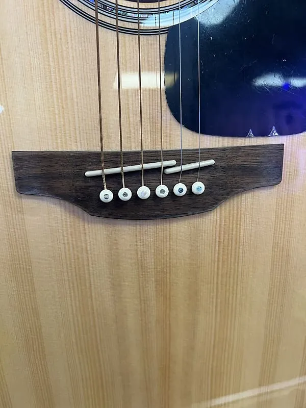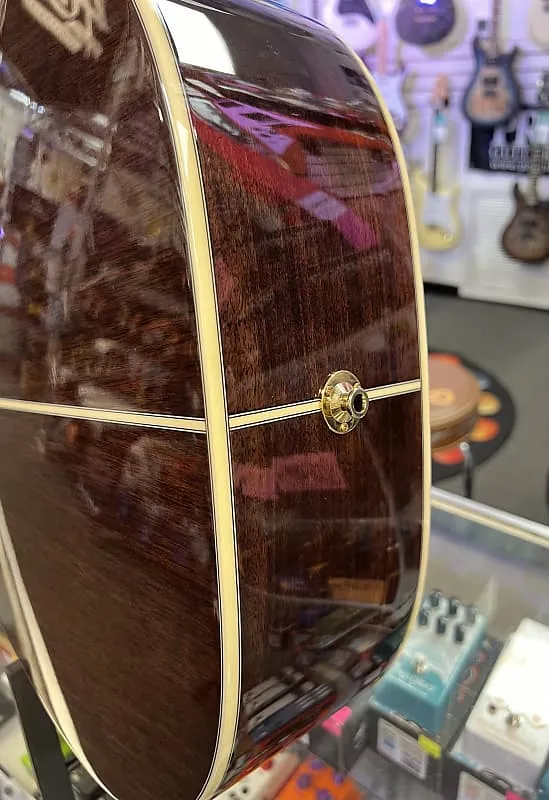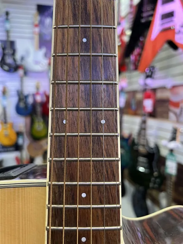 Другие отличные характеристики включают искусственный костяной порожек и разделенную седловину, накладку из палисандра на головке грифа, розетку из абалона и элементы из перламутра, золотые литые колки и красивую глянцевую отделку. Чехол не входит. включено.