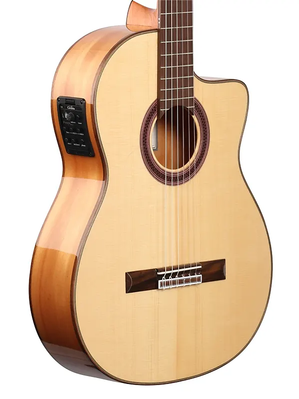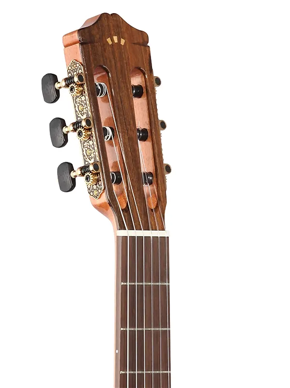 GK Studio - это идеальный инструмент для выступлений. Он выполнен с верхней дека из цельной европейской ели и корпусом и боками из кипариса, а также оснащен мягким вырезом и звукоснимателем Fishman Presys Blend. GK Studio - это фламенко-гитара, созданная для сцены, с немного меньшей глубиной корпуса, шириной грифа и верхним порожком по сравнению с традиционной испанской гитарой. Гриф разработан с минимальным изгибом или без него, предлагая низкий подъем струн для удобства и быстрой игры.