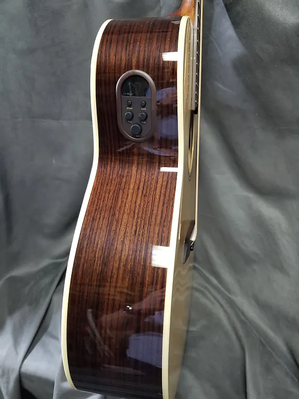 AG70ce оснащена системой LR Baggs StagePro Bronze. StagePro Bronze - это компактный боковой эквалайзер, включающий знаменитый звукосниматель LR Baggs Element под седлом. Это низкопрофильное устройство с большим подсвечиваемым тюнером, регуляторами громкости, баса и высоких частот, а также фазой. Отсек для батарейки встроен в гнездо конца грифа для легкого доступа и простого открытия нажатием.