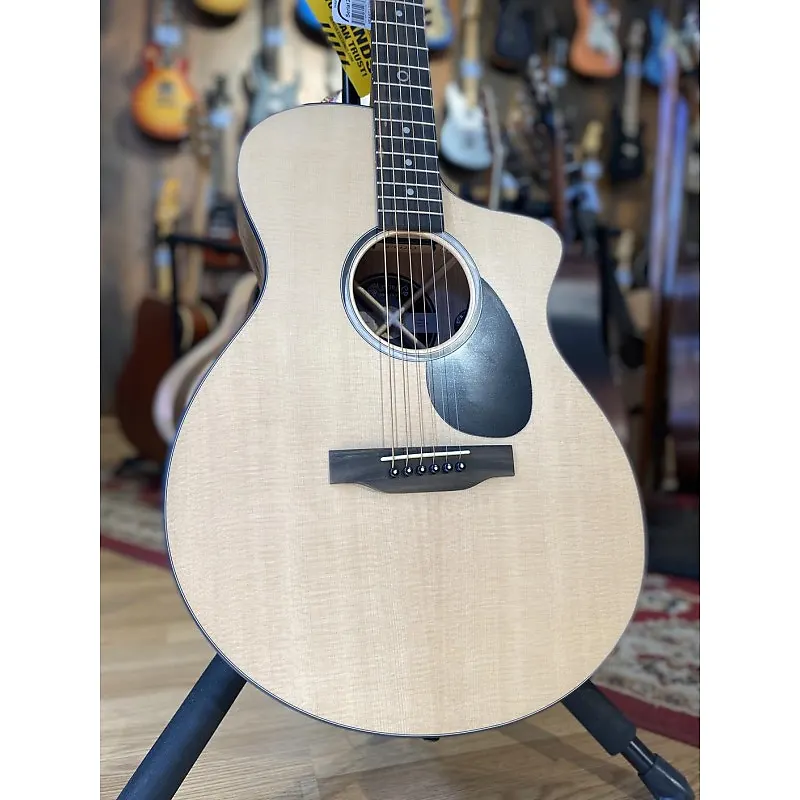 SC-10E с запатентованной системой грифа Sure Align обеспечивает полный доступ ко всем ладам, позволяя удобно достигать высоких нот. Она также оснащена низкопрофильным грифом Velocity, который эргономично подходит вашей руке при перемещении вверх по грифу, обеспечивая комфорт и удобство игры, как на электрогитаре. SC-10E имеет верхнюю дека из ели с сатиновым покрытием и потрясающие заднюю и боковые стороны из фанеры куа. Дизайн включает инкрустацию в виде черно-белой розетки апертуры, которая гармонирует с накладкой на головке грифа из эбена, накладкой на гриф и мостиком из эбена, а также с черными колками и ручками.