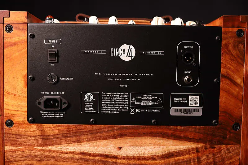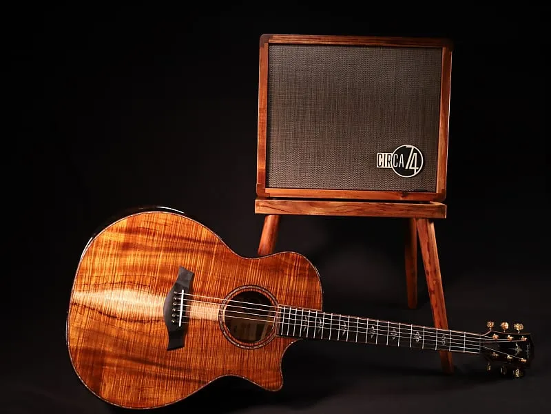 В США юбилейная модель 924ce-K LTD 50th Anniversary комплектуется ограниченным тиражом акустического/вокального усилителя Circa 74 из коа с корпусом и тканевой решеткой в стиле modern-retro, выполненными в едином дизайне. Разработанный Бобом Тейлором и его специально подобранной командой экспертов по звуку, этот усилитель Circa 74 идеально дополняет визуальные и звуковые характеристики гитары прекрасно сочетаются. Она предлагает 150 ватт насыщенного, теплого звука через 10-дюймовый полночастотный динамик, 3-полосный эквалайзер, Bluetooth, реверберацию и совместимость со всеми основными звукоснимателями акустических гитар и вокальными микрофонами. Усилитель также включает элегантную подставку из кая.