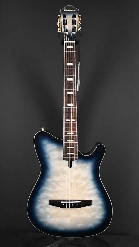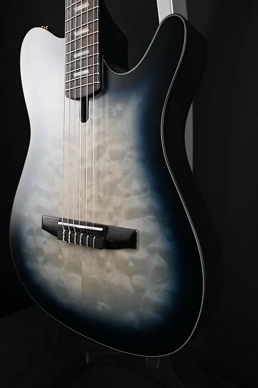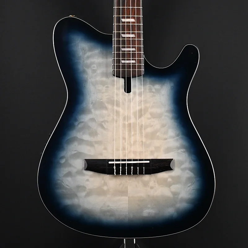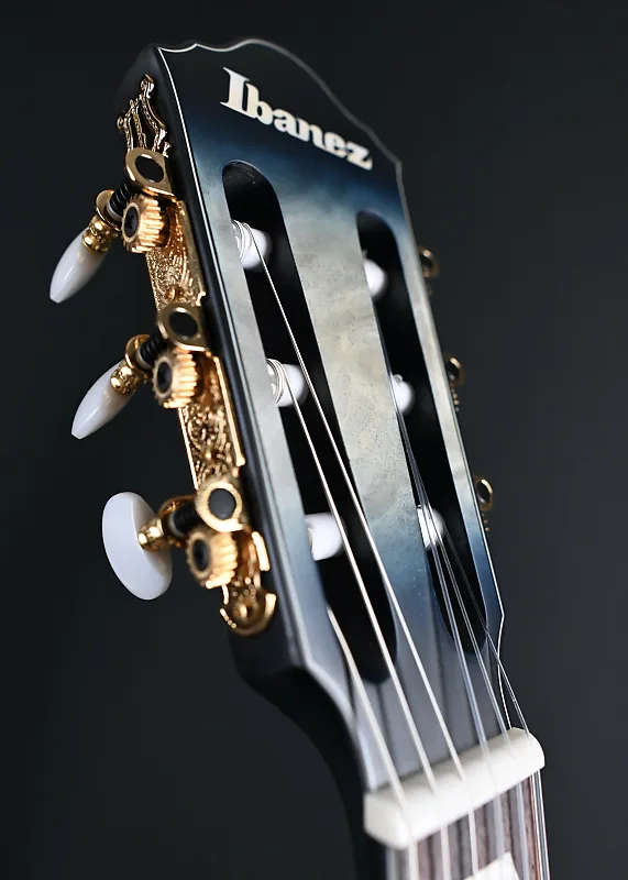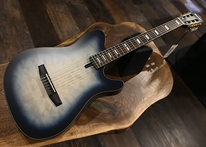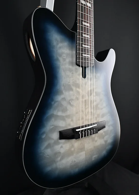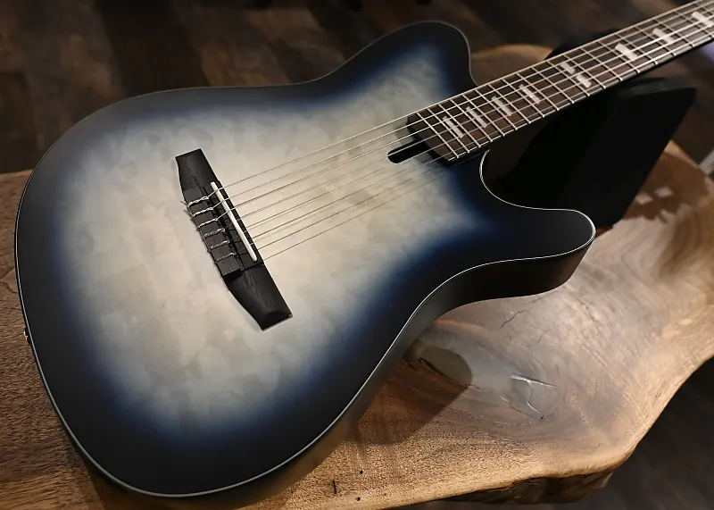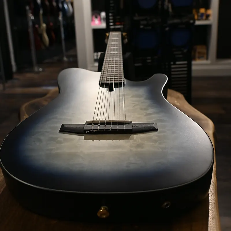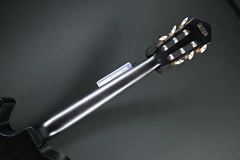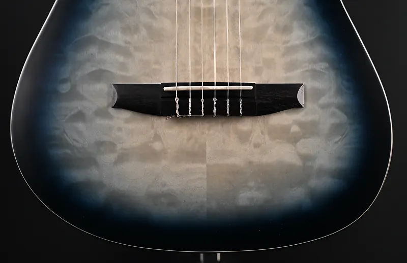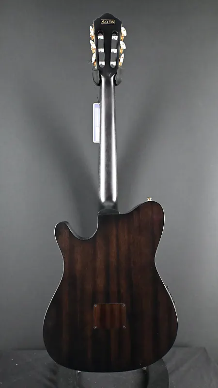 Обратная связь сведена к минимуму, так как на верхней части корпуса нет звукового отверстия. Веерное распорное устройство, которое обычно используется в классических гитарах, позволяет этой гитаре иметь теплое и естественное звучание нейлоновых струн. звук.