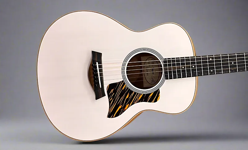 «GS Mini-e Special Edition, Trans White, с прозрачным белым верхним покрытием, демонстрирующим древесные волокна еловой деки, представляет собой визуально притягательный и эффектный дизайн. Ярким акцентом комплекта является фантастическая яркая накладка-пикгард Firestripe, создающая впечатляющий контраст с белой декой. Задняя дека и верхние деки из многослойного сапеле сочетаются с массивной топ-товой верхней дека из торрефицированной ели Ситка в нашей уменьшенной, матовой версии корпуса Grand Symphony. В результате получается удобная для путешествий гитара, которая обеспечивает мощную проекцию и насыщенный, сбалансированный тон с приятным, “игранным” звучанием. Благодаря тонкой шее Taylor, низкой настройке струн и компактной длине мензуры 23-½ дюйма неудивительно, что отмеченный наградами GS Mini так комфортен и доставляет удовольствие при игре. Встроенный звукосниматель ES-B, включая цифровой тюнер, обеспечивает чистое и естественное усиленное звучание для тех, кто хочет подключать гитару к усилителю. В комплект входит футляр для переноски, и вы с вашим GS Mini готовы» дорога для всех ваших музыкальных приключений.