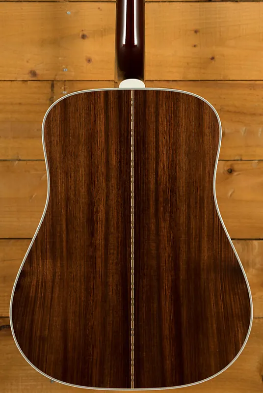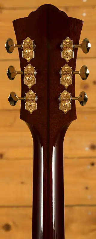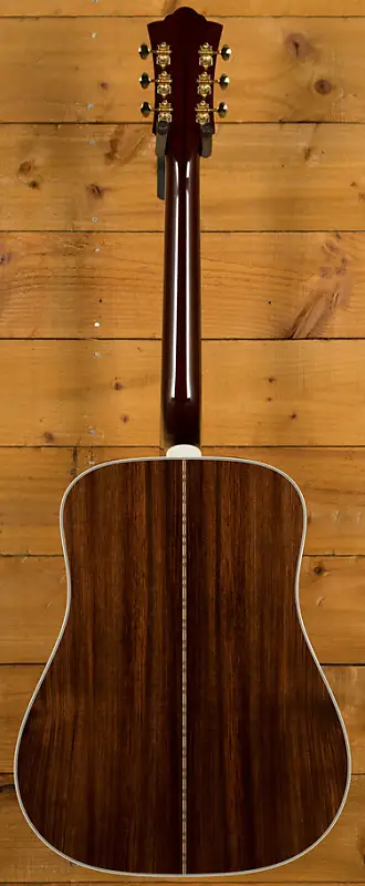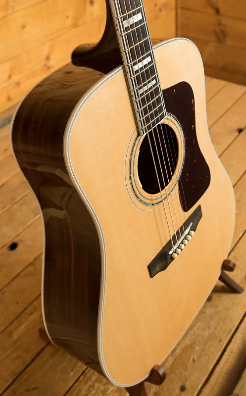 Модель D-55E отражает высокое качество, которое всегда сопровождает гитары Guild, произведенные в США. Гитара имеет полностью массивную конструкцию и использует классическое сочетание елового верха и розового дерева. Это отлично подходит для дредноут-гитар, и явно видно, почему она выдержала испытание временем. Внутри гитары используются бруски из еловой древесины Адирондак, которые были вырезаны для получения утонченного звучания. Внешний вид гитары великолепен: гриф из черного дерева имеет красивый темный оттенок, который действительно подчеркивает инкрустации. Как головка грифа, так и сам гриф окантованы, колки выполнены из золота, а покрытие - это блестящий нитроцеллюлозный лак, нанесенный вручную. Эта гитара Guild действительно выглядит и звучит впечатляюще - это фантастический дредноут, который существует с тех пор 1968!