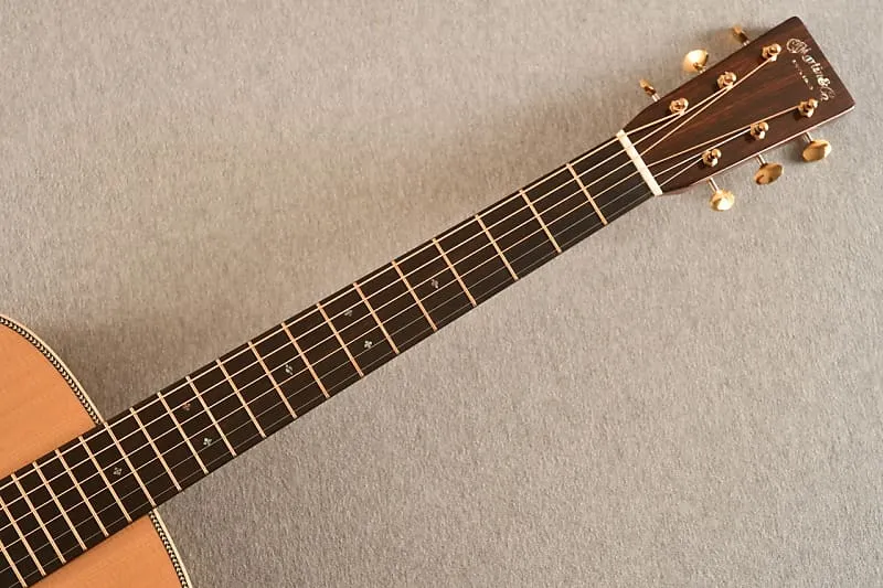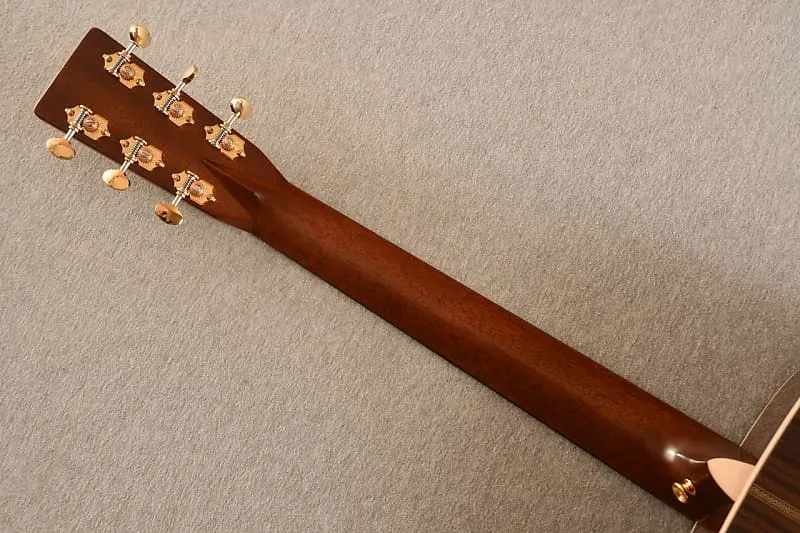 OM-28E Modern Deluxe имеет настоящий гриф из махагони с винтажным deluxe-профилем и атласной отделкой.