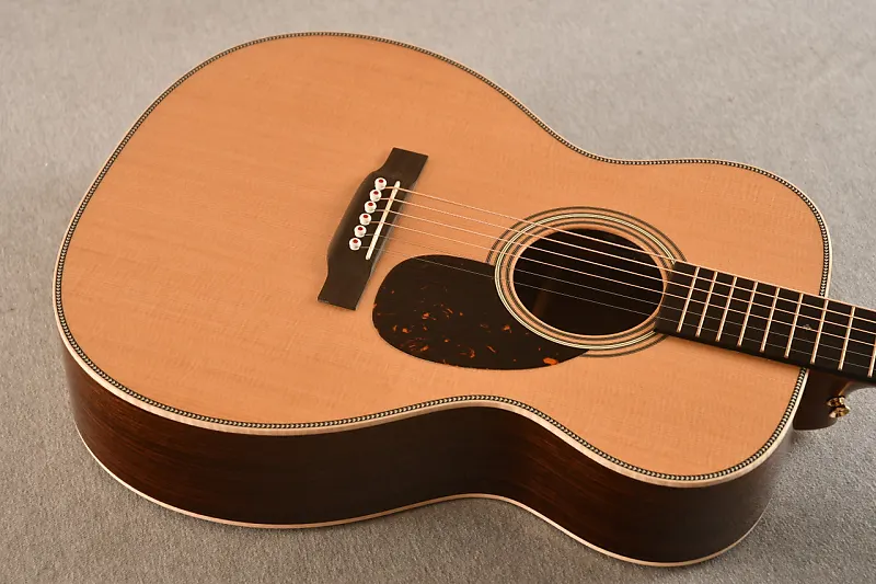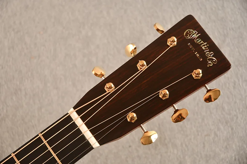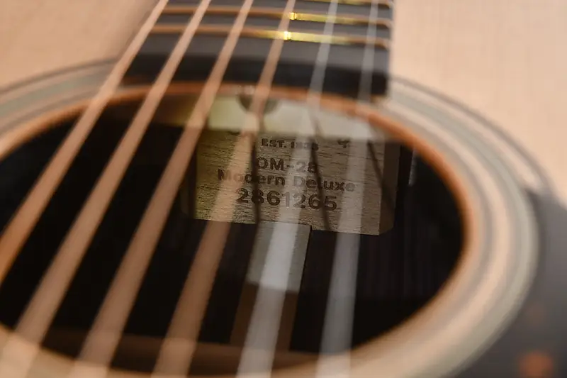 Благодаря премиальным деталям, таким как элегантная инкрустация рождественского узора из абалоновой раковины и золотые колки, OM-28E Modern Deluxe является настоящим шедевром для музыкантов, ищущих высокий уровень звука и мастерства.