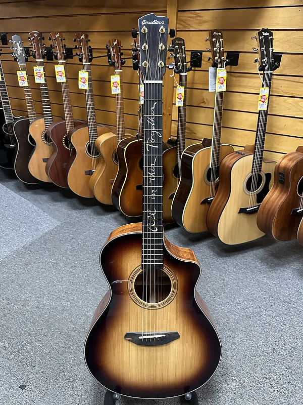 Breedlove Jeff Bridges Amazon Concert CE в цвете sunburst. Потрясающая акустико-электрическая гитара, все отделка и детали действительно выделяются. Доставка доступна по континентальной части США.