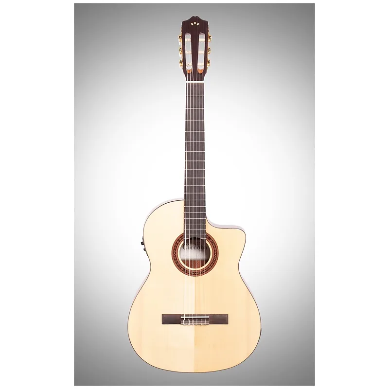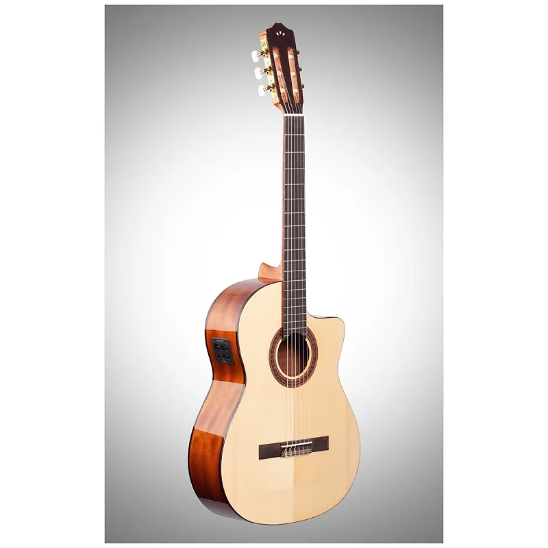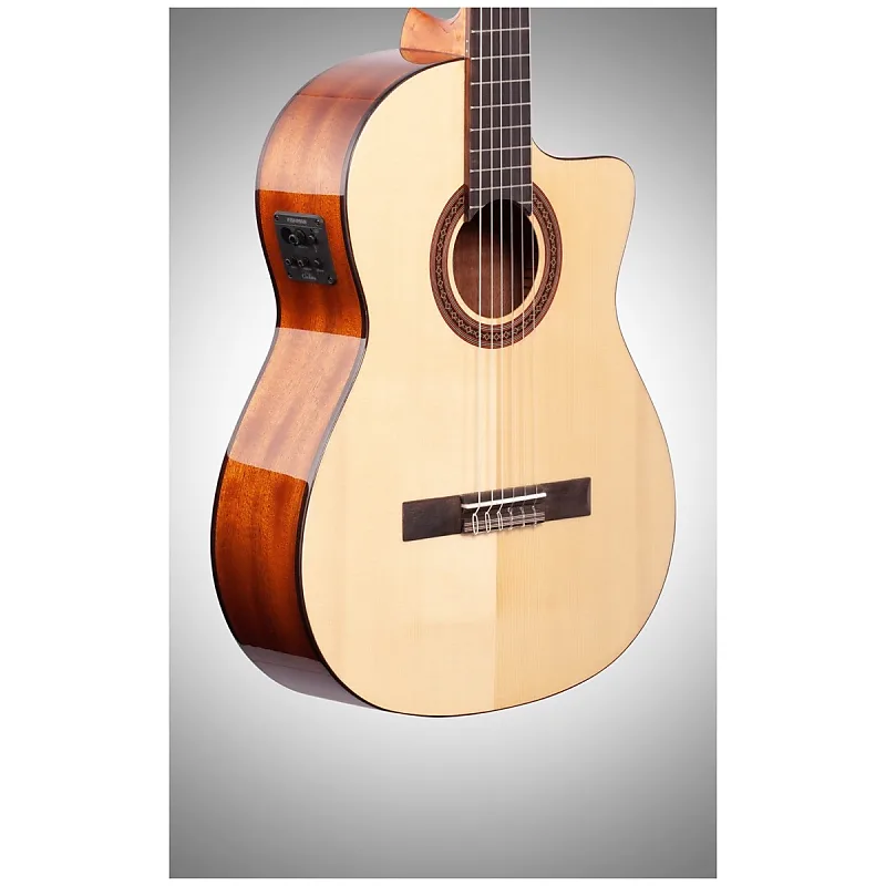 Характеристики: - Верх из цельного канадского кедра или ели Ситка - Задняя дека из африканского махагона - Блестящее полиуретановое покрытие - Длина мензуры 650 мм - Ширина у верхнего порожка 50 мм - Шея тоньше, чем у стандартной классической гитары - Гриф из красного дерева - Колки Cordoba черно-золотые с цветочным узором - Гриф из кедра - Мост из красного дерева - 3-полосная пьезоэлектроника с встроенным тюнером