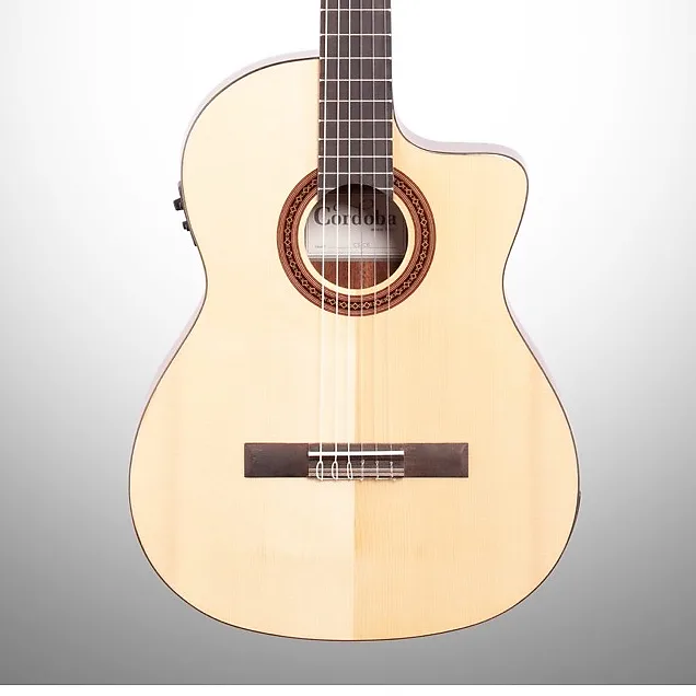 Cordoba C5CE Классическая Акустико-Электрическая Гитара Cordoba C5-CE - это полноразмерная акустическая гитара с нейлоновыми струнами, вырезом и электроникой BBand. Она оснащена цельной верхней декой и корпусом из африканского махагона. Верхняя дека усилена по схеме 5 фан-форменных струй Торреса, обеспечивающей теплое и резонансное звучание. Гриф C5-CE выполнен из легкого махагона и тоньше, чем стандартная классическая гитара, с шириной грифа у верхнего порожка 50 мм (1,96 дюйма) вместо 52 мм (2 дюйма).
