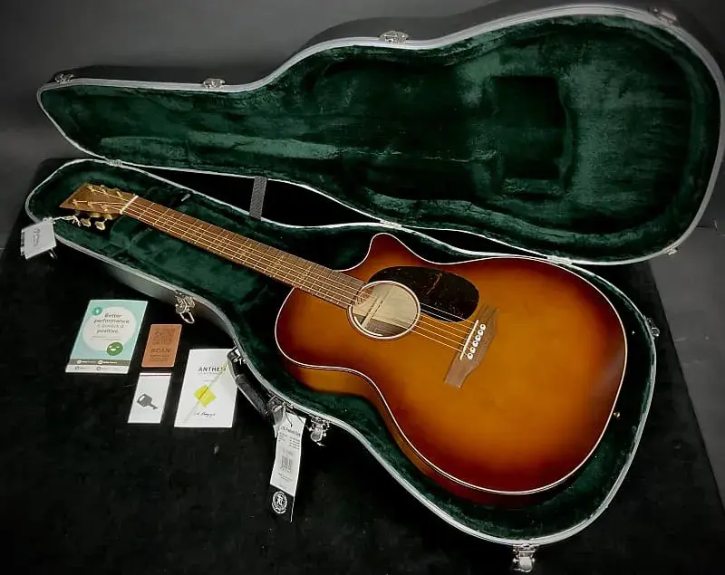 Это GPCE Inception Maple от Martin. Мартин объединил природу и технологии: этот уникальный акустико-электрический инструмент ручной работы оснащен скелетизированной резонаторной системой с выемками и звуковыми каналами внутри корпуса для увеличения резонанса и превосходного звучания. GPCE Inception изготовлен из комбинации устойчивых и доступных на местном рынке тонкосонных пород древесины, включая верхнюю деку из сертифицированной FSC европейской ели, обечайки из клена и эффектную трехсекционную спинку из клена и черного ореха, что обеспечивает чистый, проекционный и сбалансированный тон. Он имеет сатиновое абречное солнцезатуманенное покрытие, окантовку из черного ореха, накладки в виде стрел на грифе из клена, золотые открытые колки и вырез для удобного доступа к верхним ладам. GPCE Inception оснащен электроникой LR Baggs Anthem и поставляется в формованном жестком чехле.