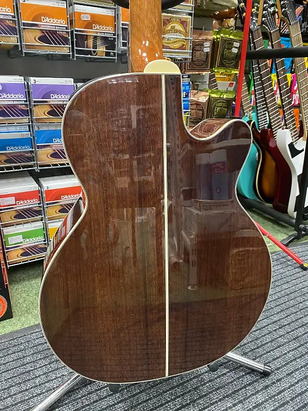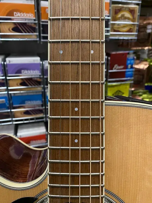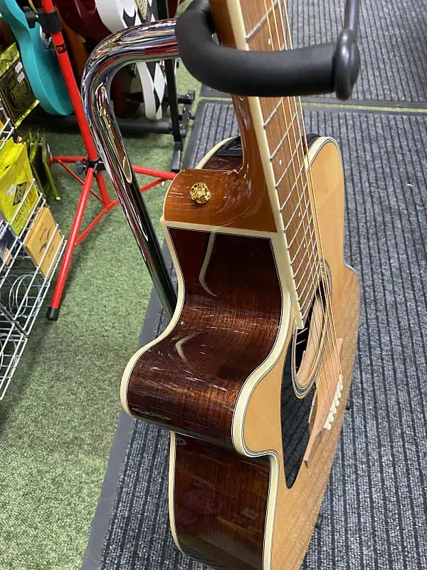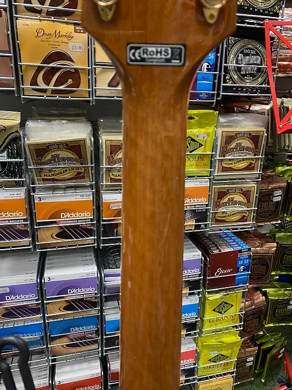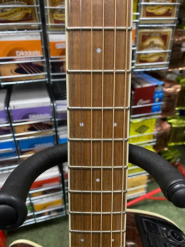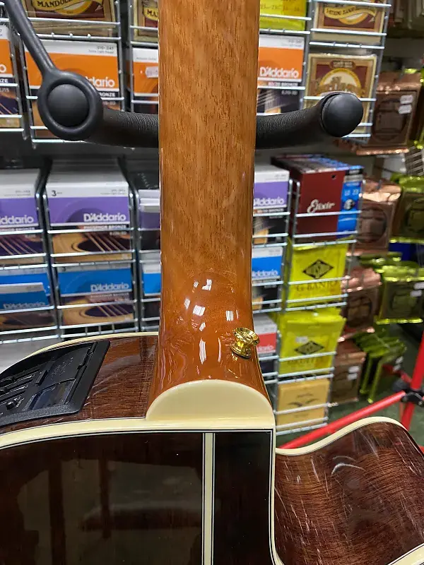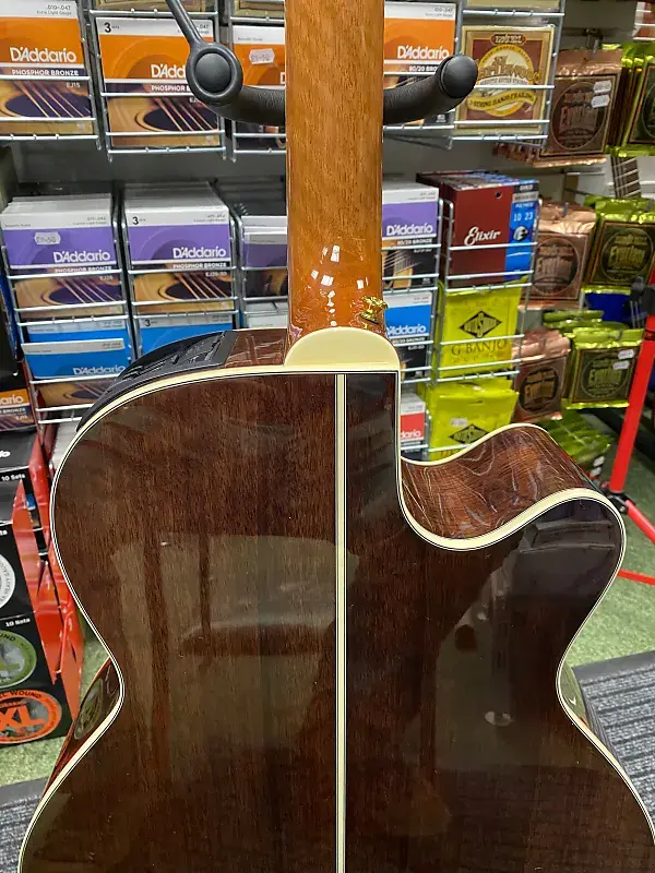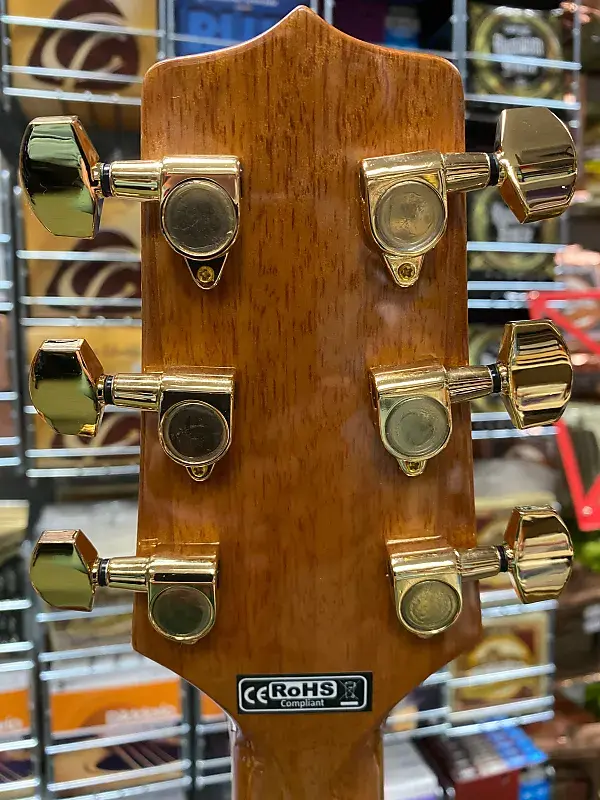 Другие замечательные особенности включают синтетическую костяную гайку и раздельное седло бриджа, лавровый колпак для головы, розетку из морского ушка и инкрустацию в виде точек, золотые литые тюнеры и красивую глянцевую отделку.