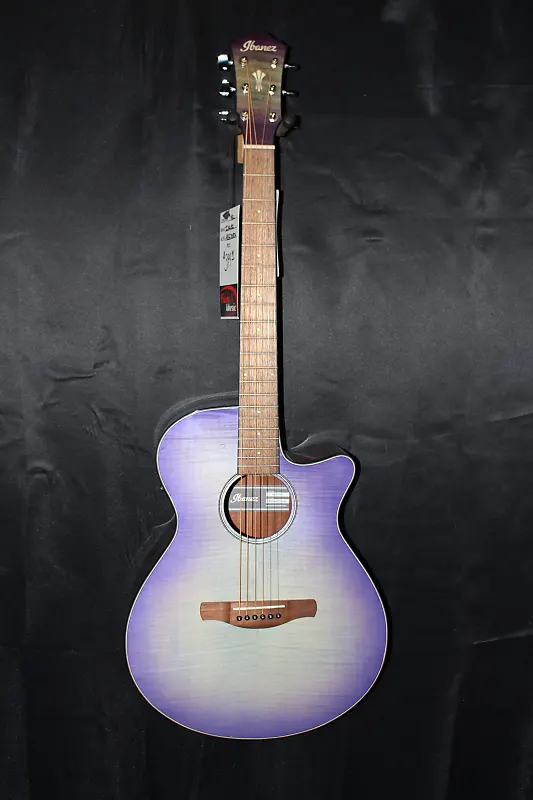 Акустико-электрическая гитара Ibanez AEG70PIH - Purple Iris Ищете отличное сочетание цены и качества в акустико-электрической гитаре? Обратите внимание на акустико-электрическую гитару Ibanez AEG70. Она готова к подключению и игре прямо из коробки благодаря встроенному датчику под седлом и системе предусилителя. Также есть встроенный тюнер, чтобы вы всегда звучали наилучшим образом. Сочетание верхней дека из кленового фламма и корпуса из сапеле придает этой гитаре насыщенный и сбалансированный звук по всему тональному спектру. Накладка шеи с сатиновой отделкой обеспечивает гладкость и быструю игру, делая акустико-электрическую гитару Ibanez AEG70 отличным выбором по соотношению цена-качество.