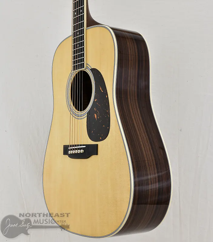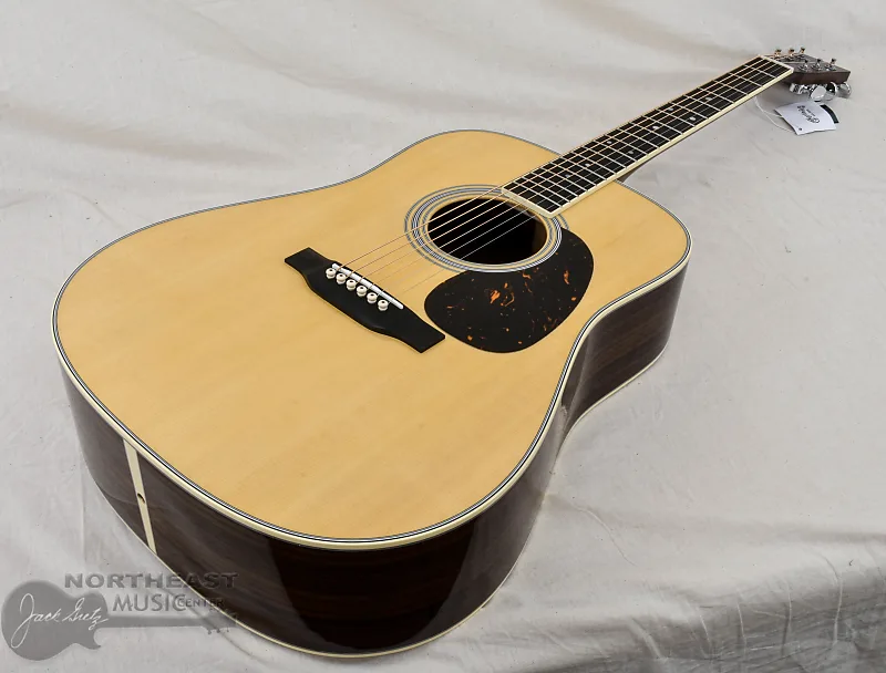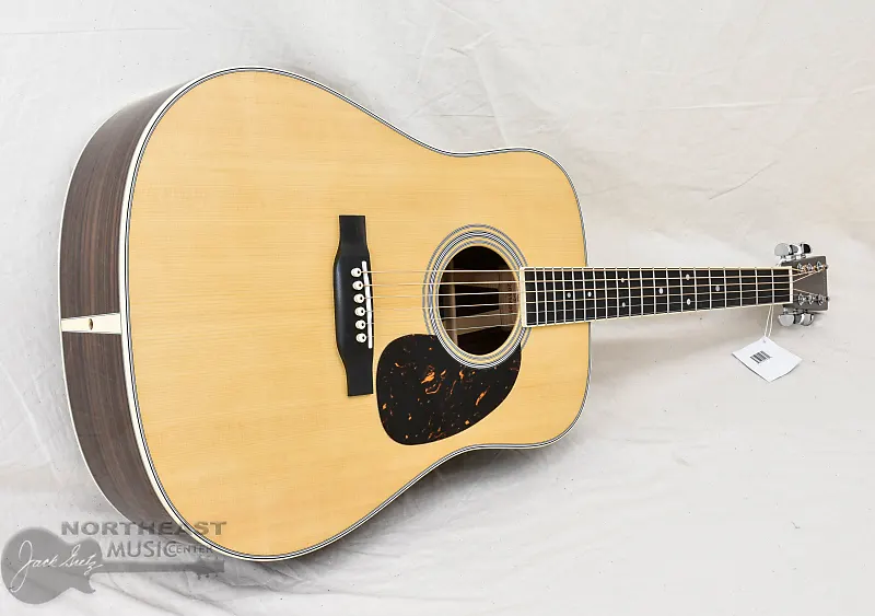Известный своим сильным басовым откликом, D-35 имеет заднюю панель, состоящую из трех частей, и гриф, переплетенный в старинный белый переплет. Топ из ситхинской ели, спинка и бока из восточно-индийского палисандра, а также выразительные прямые распорки на четверть дюйма обеспечивают баланс и мощность в любой ситуации. Нестареющая форма дредноута и богатый басовый тон сделали его выбором для пикеров, бренчателей и исполнителей блюграсса и фолка от Джонни Кэша до Сета Аветта.