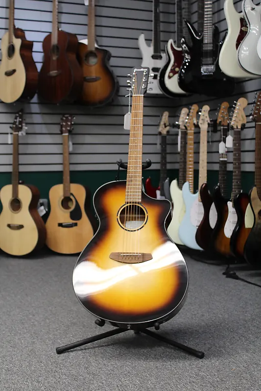 Это совершенно новая акустическая электрогитара Breedlove Discovery S Dreadnought Concerto Edgeburst CE. Верх выполнен из европейской ели, а спинка и бока - из африканского красного дерева. Он из линейки Concerto от Breedlove, что означает, что он имеет немного большую форму корпуса дредноута для увеличения объема и мощных низких частот. Он поставляется с блестящей отделкой Edgeburst.