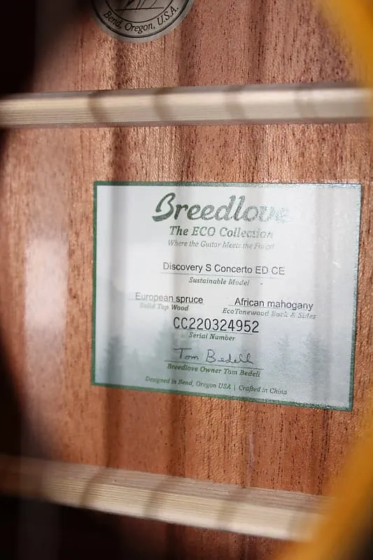 С сайта Breedlove: "Breedlove Discovery S Concerto Edgeburst CE - это все, что вы могли бы хотеть от первой гитары - или новой любимой гитары - и даже больше! Этот инструмент, изготовленный с использованием экологически сознательной технологии EcoTonewood с превосходным звучанием, с характерной глянцевой отделкой Edgeburst, которая поможет вам выделиться из толпы, разработан в изгибе с учетом серьезных ударов. Стильный мягкий вырез, тонкий, быстрый гриф и узкая ширина порожка облегчают игру; верх из массива европейской ели создает классический, захватывающий тон и проекцию. Отличный акустический звук побуждает вас играть лучше, звучать лучше и играйте больше, а электроника Fishman Presys I позволяет вам играть так громко, как вам хочется.