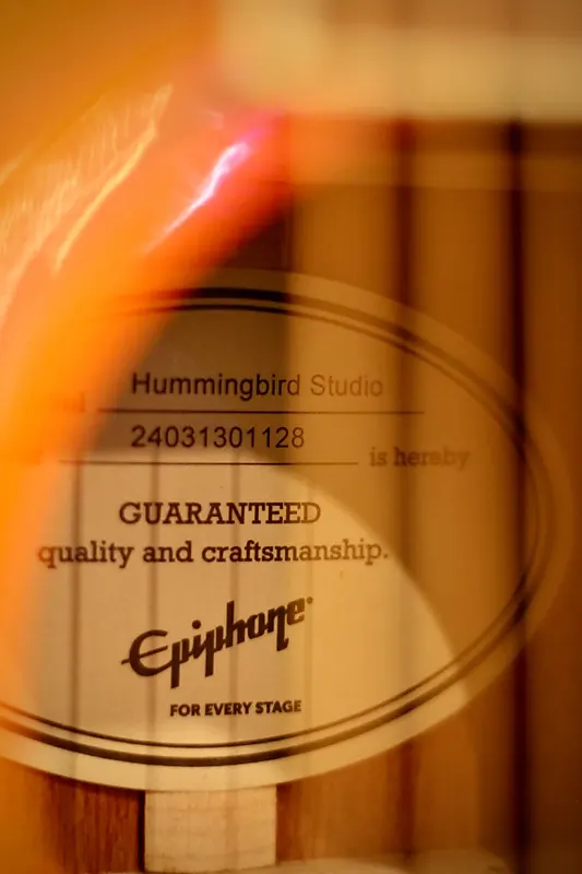 Hummingbird Studio Acoustic/Electric обновляет классику 60-х годов с массивным еловым верхом, грифом и корпусом из красного дерева, тюнерами Grover Rotomatic с соотношением сторон 18:1, традиционным креплением и историческим медиатором Hummingbird, а также электроникой Fishman Sonitone.