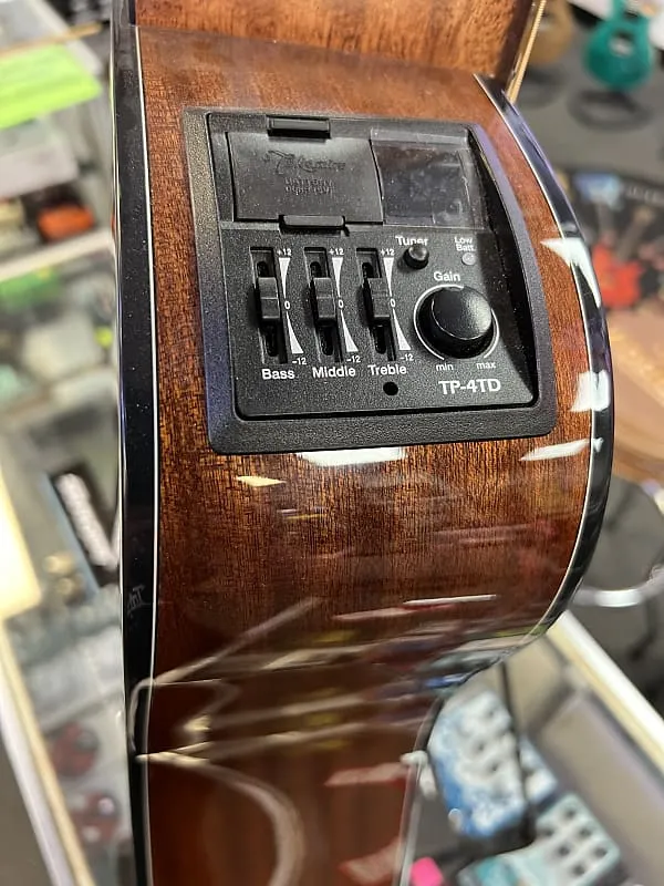 6-струнная акустико-электрическая гитара с цельной верхней декой из ели, корпусом и обечайкой из красного дерева и предусилителем TP-4TD с тюнером - натуральная