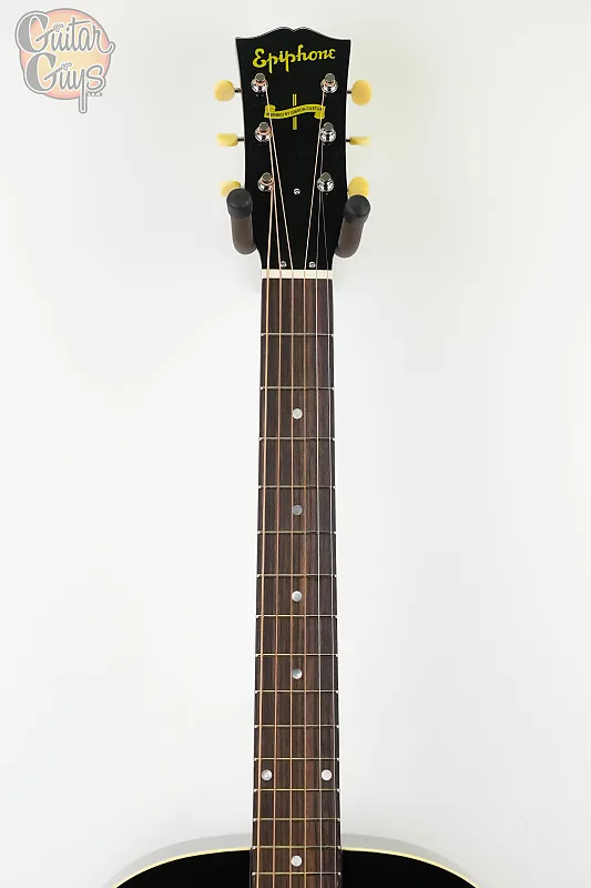 Общие сведения Серия: Epiphone Inspired by Gibson Цвет продукта: Винтажный солнечный узор (Vintage Sunburst) Тип чехла: Жесткий чехол входит в комплект Заводская настройка: Стандарт E (E-A-D-G-B-E) Корпус Форма корпуса: Дредноут с округлым плечом Тип выреза акустики: Без выреза Материал корпуса: Махагон Отделка корпуса: Глянцевая Материал деки: Термостаренная цельная ель Материал распорок: Ель Схема распорок: Рифленая X-образная распорка Окантовка корпуса: Однослойная офицерская (слоновая кость) Гриф Материал грифа: Махагон цельного куска Гриф Отделка: Глянец Оттенок/цвет грифа: Махагоновая морилка Форма грифа: V-образная Материал накладки на гриф: Индийский палисандр Материал порожка: Кость Ширина порожка: 1,73" (44 мм) Радиус накладки: 12" (304,8 мм) Длина мензуры: 24,75" (628,65 мм) Количество ладов: 19 ладов Соединение грифа с корпусом: Set Neck (вставной гриф) Инкрустация на накладке: Точки из перламутра Форма инкрустации: Точки Боковые маркеры: Точки Инкрустация/декаль на головке грифа: Головка гитары Gibson Open Book с логотипом Gibson и золотым шелкографическим текстом "Epiphone Inspired by Gibson" Обвязка грифа: Нет Электроника Акустическая электроника: L.R. Baggs VTC Bronze Фурнитура Цвет фурнитуры: Никель Мост: Прямоугольный из розового дерева, с закрытым пазом Колки: Открытые на трех пластиночках с кремовыми кнопками Звукозащитная накладка: Черепаховый Накладка на гриф для стержня регулировки: Черный колокольчик
