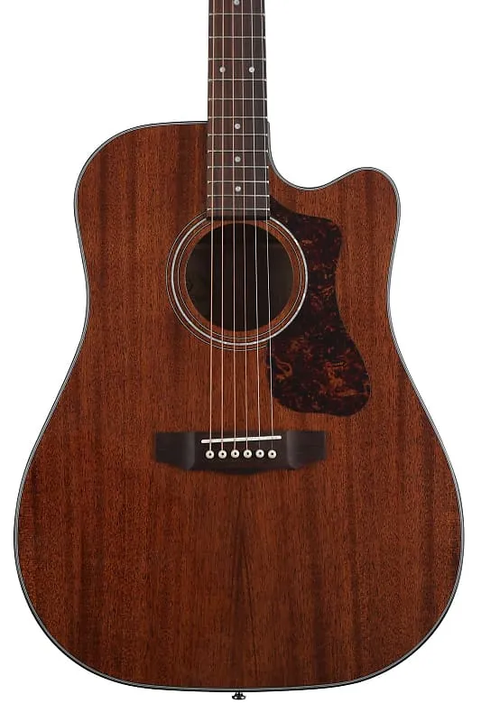 Акустико-электрогитара с верхней дека из красного дерева, задней декой и обечайками из красного дерева, грифом из красного дерева и накладкой грифa из палисандра - натуральный цвет.