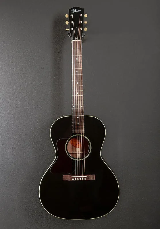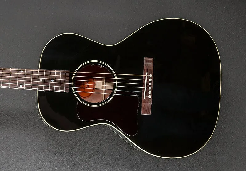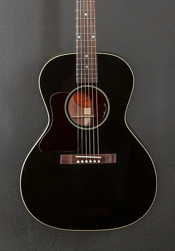 Эбеновое дерево, корпус малой формы L-00, лаковая отделка глянцевым нитроцеллюлозным лаком, верхняя дека из ели Ситка, традиционная вручную вырезанная X-рифленая система распорок, задняя дека и обечайки из махагони, однопластовая окантовка верха и задней дека, грифа из махагони с гладким сужением, грифовая доска из розового дерева с радиусом 12" с инкрустацией перламутровыми точками и стандартными ладами, масштаб 24.75", ширина неба 1.724", колки Golden Age, с системой звукоснимателей L.R. Baggs VTC и жесткий чехол