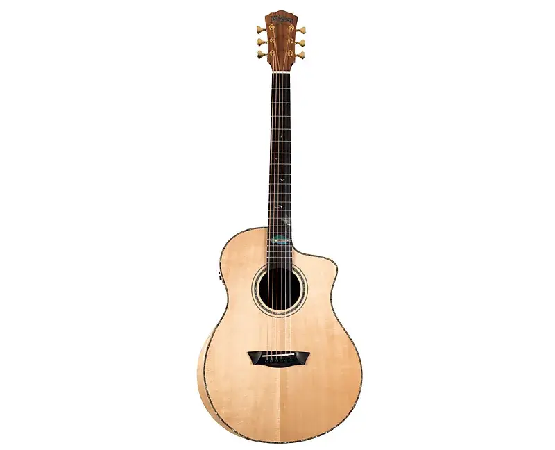 Флагманская модель серии Bella Tono - SC56S Allure; она использует все возможности и удовлетворяет все требования. Эта модель оснащена массивной верхней декой из ели, великолепной спинкой и боковыми панелями из акации и корпусом с вырезом для легкого доступа к верхним ладам. Звукосниматель украшен потрясающей абалонью как на розетке, так и на окантовке, а сам корпус окантован кленом. Накладка на гриф из черного дерева продолжает тему роскошного оформления, изображая остров на пляже с пальмой и парящими птицами, которые выполнены из изысканной абалони и бирюзы. Конструкция корпуса Washburn Studio обеспечивает невероятно комфортное ощущение при игре, при этом сохраняя плотные низкие, сфокусированные средние и чистые высокие частоты, характерные для инструментов с большим корпусом. Массивная верхняя дека из ели помогает подчеркнуть звуковые нюансы по всему регистру инструмента и демонстрирует подлокотник Washburn Comfort Arm Rest. Полная длина мензуры 25,5" обеспечивает непринужденное ощущение для музыканта, а матовая отделка и современный профиль грифa «C» делает игру особенно удобной. Профиль грифа из махагони гладкий и приятный на ощупь. Для живых выступлений или работы в студии он оснащен системой звукоснимателей Barcus Berry LX4.