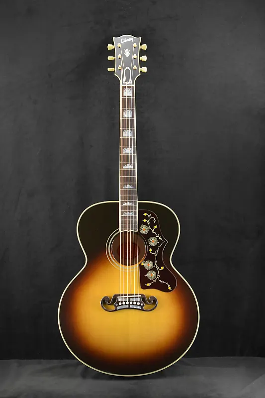 Gibson SJ-200 - самая известная в мире акустическая гитара, заслужившая звание «Король флаттопов». С момента своего выпуска в 1937 году ее широкое использование американскими музыкантами этого века сделало Super Jumbo одной из самых востребованных акустических гитар нашего времени. Самыми яркими особенностями нового SJ-200 Original являются резной мост «Moustache» с четырьмя планками и гравированная черепаховая ... гриф с накладкой из перламутра в виде короны и инкрустацией на головке грифа, а также изысканной спинкой и декой из кленового флейма. SJ-200 - это американская оригинальная модель с характерной формой и элегантным внешним видом.
