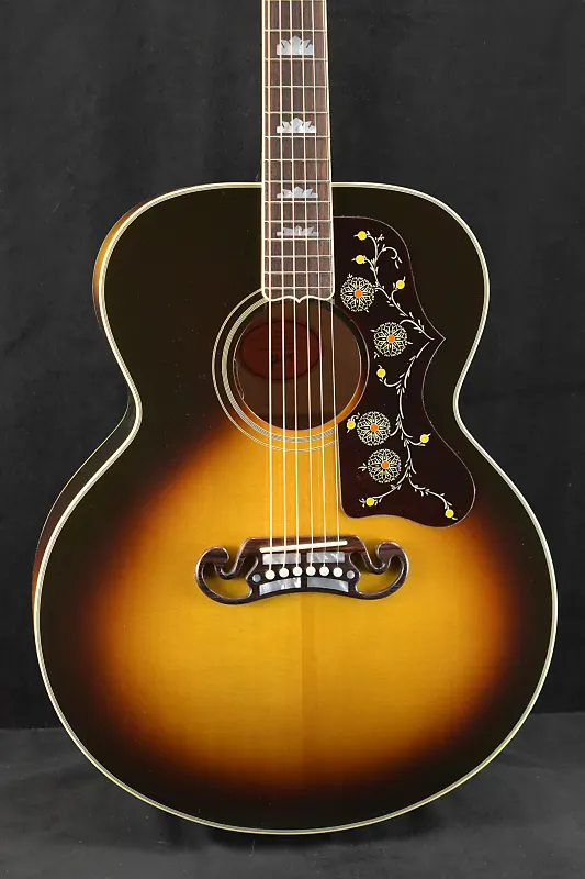 Gibson SJ-200 - самая известная в мире акустическая гитара, заслужившая звание «Король флаттопов». С момента своего выпуска в 1937 году ее широкое использование американскими музыкантами этого века сделало Super Jumbo одной из самых востребованных акустических гитар нашего времени. Самыми яркими особенностями нового SJ-200 Original являются резной мост «Moustache» с четырьмя планками и гравированная черепаховая ... гриф с накладкой из перламутра в виде короны и инкрустацией на головке грифа, а также изысканной спинкой и декой из кленового флейма. SJ-200 - это американская оригинальная модель с характерной формой и элегантным внешним видом.