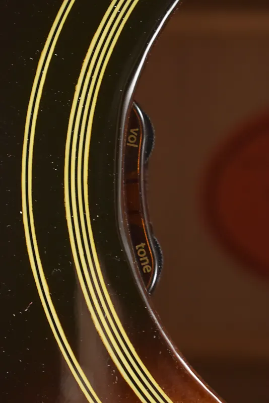 Gibson SJ-200 - самая известная в мире акустическая гитара, заслужившая звание «Король флаттопов». С момента своего выпуска в 1937 году ее широкое использование американскими музыкантами этого века сделало Super Jumbo одной из самых востребованных акустических гитар нашего времени. Самыми яркими особенностями нового SJ-200 Original являются резной мост «Moustache» с четырьмя планками и гравированная черепаховая ... гриф с накладкой из перламутра в виде короны и инкрустацией на головке грифа, а также изысканной спинкой и декой из кленового флейма. SJ-200 - это американская оригинальная модель с характерной формой и элегантным внешним видом.