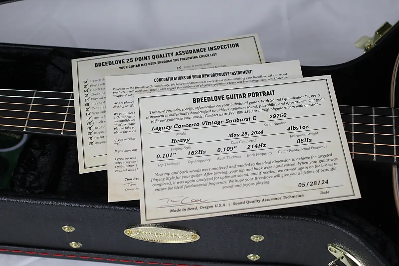 Музыканты Breedlove по всему миру могут подтвердить: при регулярном и правильном уходе ваша гитара Breedlove будет служить вам всю жизнь - и вдохновлять. Новые инструменты Breedlove, приобретенные у авторизованного дилера Breedlove, имеют гарантию отсутствия дефектов в материалах и сборке на протяжении всего срока жизни первоначального владельца. В дополнение к материалам и сборке Breedlove предлагает двухлетнюю гарантию на колки и электронные комплектующие. Чехлы и сумки подлежат однолетней гарантии, покрывающей дефекты конструкции и фурнитуры.