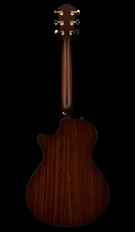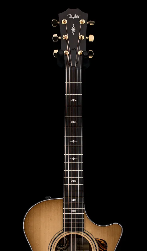 характерная визуальная привлекательность. Другие примечательные детали включают розетку с тремя кольцами с контрастной черно-белой окантовкой, черную окантовку корпуса и инкрустации на грифе и головке грифа из итальянского акрила в виде драгоценных камней. Комплектация в честь 50-летнего юбилея включает памятную внутреннюю этикетку, золотые колки Taylor и эбеновые штифты мостика с золотыми акриловыми точками. Гитара оснащена встроенным звукоснимателем ES2 и поставляется в чехле Taylor Deluxe Hardshell. В целом, это элегантный, прекрасно выполненный инструмент, который обещает годы вдохновляющего музыкального творчества.Технические характеристики: