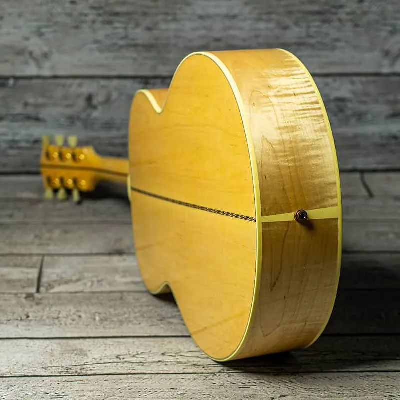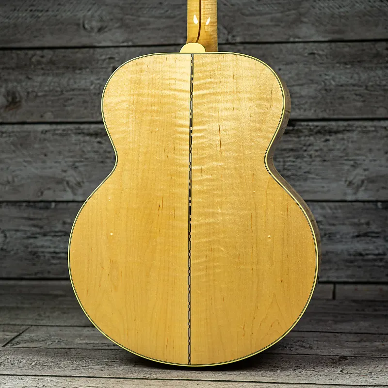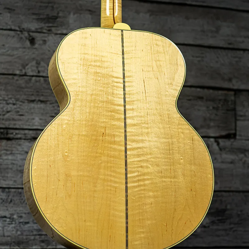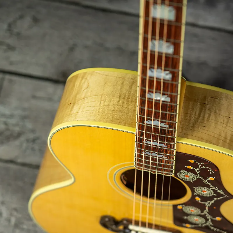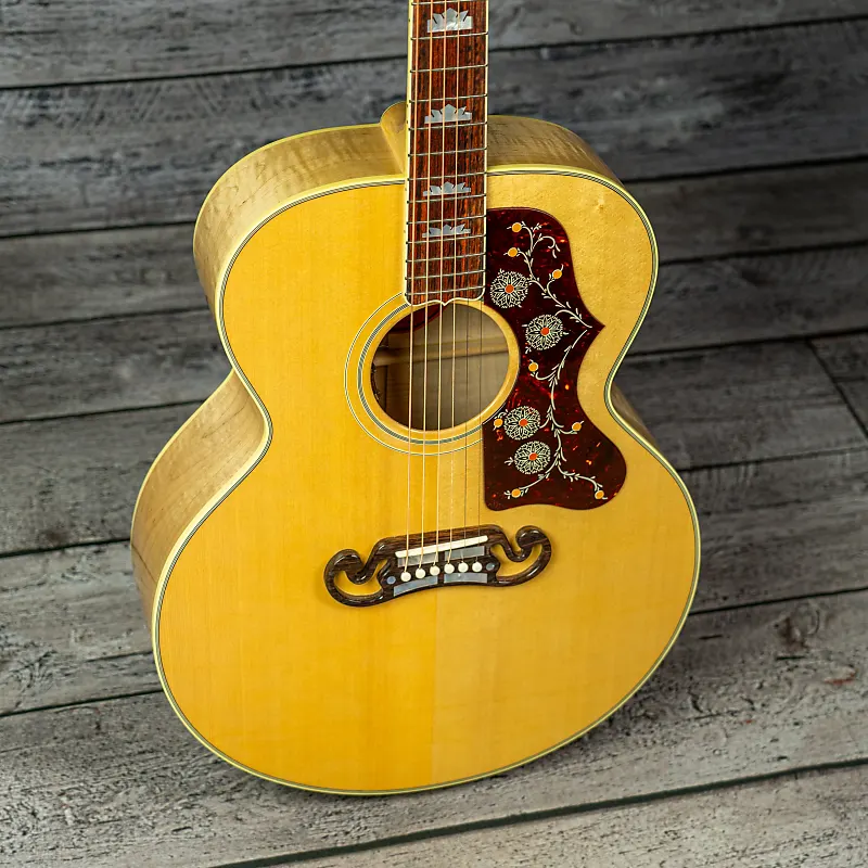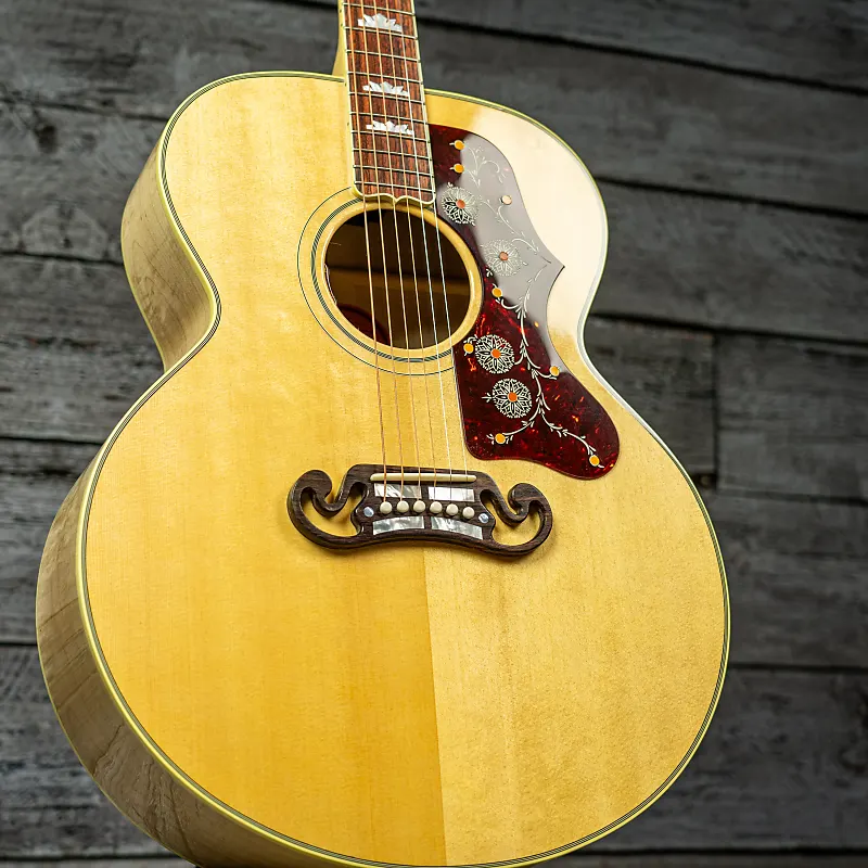 Являясь винтажной версией популярной модели Gibson J-200, гитара J-185 имеет свою собственную легенду. С верхней декой из массива ели Ситка и задней частью и обечайками из кленового дерева с волнистым рисунком, эта акустическая гитара излучает красиво сбалансированный и насыщенный звук с полным диапазоном частот.