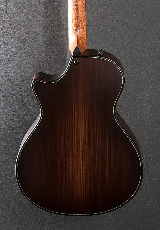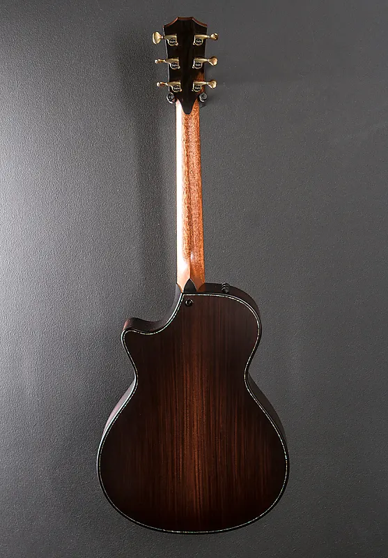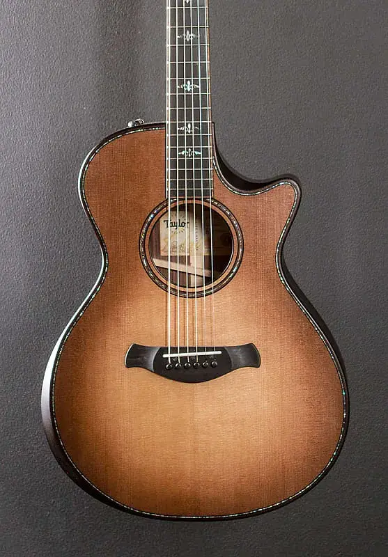 Silent Satin Wild Honey Burst верх с задней панелью и боковинами Kona Edgeburst, форма корпуса Grand Concert с скошенным вырезом и подлокотником, верхняя дека из ели Лутца, однокольцевая розетка Paua, обвязка V-Class с Relief. Корпус из индийского розового дерева, задняя и боковые части из индийского розового дерева, окантовка из западноафриканского кремового эбена с верхней и задней кромкой из пауа, грифовая накладка из западноафриканского кремового эбена с инкрустацией Belle Fleur из перламутра на грифе из тропического красного дерева, длина мензуры 24 7/8”, ширина порожка 1 3/4”, система звукоснимателя Expression 2 и жесткий футляр.