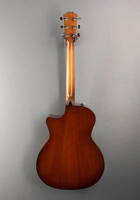 «Наша первая гитара серии Grand Auditorium с задней и боковыми панелями из Urban Ironbark, модель 514ce обеспечивает чистый, мощный звук, сочетающий высокий звон розового дерева с теплым и ударным средним диапазоном махагони и сбалансированным по всему спектру звучанием. В паре с верхней декой из термически обработанной ели Ситка для уже сыгранного, зрелого звучания и пружинными распорками V-Class для повышения громкости и сустейна, 514ce обеспечивает мощь, идеальную для активного боя медиатора, а также чувствительность к касанию, дающую широкий динамический диапазон, что прекрасно подходит для игры пальцами. С новыми инкрустациями Aerial из итальянского акрила, однокольцевой розеткой из абалона, тонкой окраской, подчеркивающей насыщенные красные оттенки Urban Ironbark, слегка затемненным краем и корпусом с глянцевой отделкой, 514ce сочетает традиционные и современные визуальные стили. Поставляется с электроникой ES2 и фирменным жестким кейсом.»