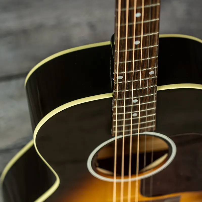 Мастерское сочетание винтажного тона и внешнего вида, отделки нитро с ручным распылением и ручных зубчатых креплений для культового звучания Gibson в гитаре меньшего размера.