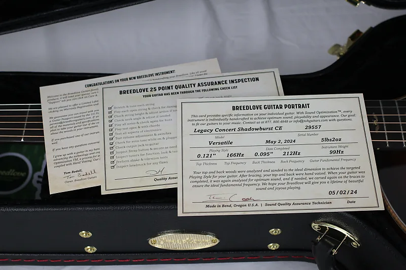Музыканты Breedlove по всему миру могут подтвердить: при последовательном и правильном уходе ваш инструмент Breedlove прослужит вам всю жизнь - и будет вдохновлять. Новые инструменты Breedlove, приобретенные у авторизованного дилера Breedlove, гарантированно не имеют дефектов материалов и изготовления на протяжении всей жизни первоначального владельца. Кроме материалов и изготовления, компания Breedlove предоставляет двухлетнюю гарантию на колки и электронные системы. Чехлы и сумки подлежат одной годовой гарантии, покрывающей дефекты конструкции и фурнитуры.