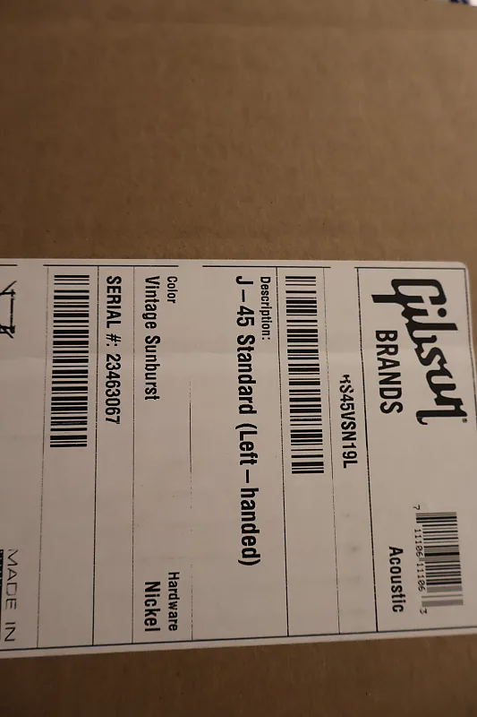 Gibson J-45 Standard (Левая рука) Винтажный Sunburst, совершенно новый