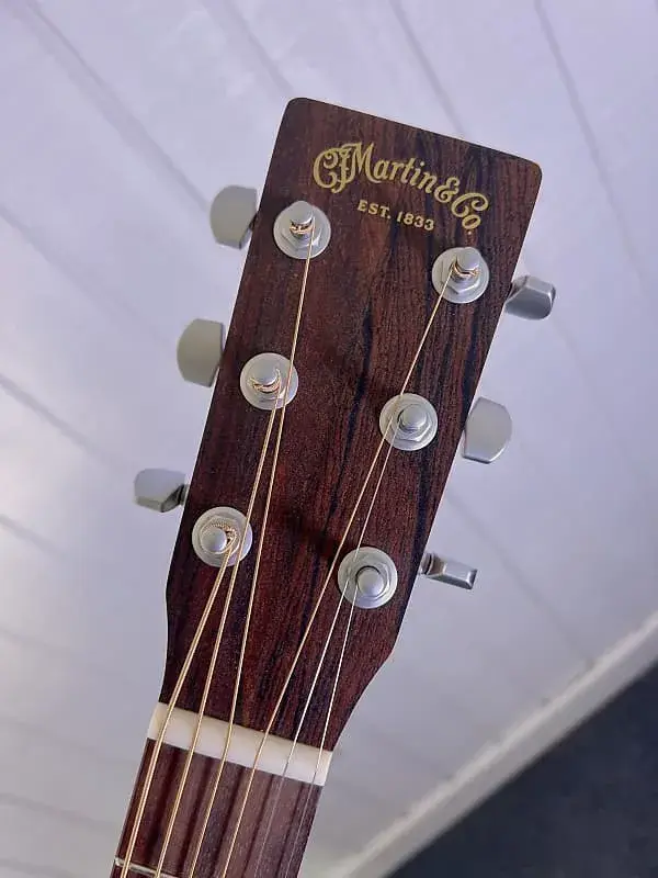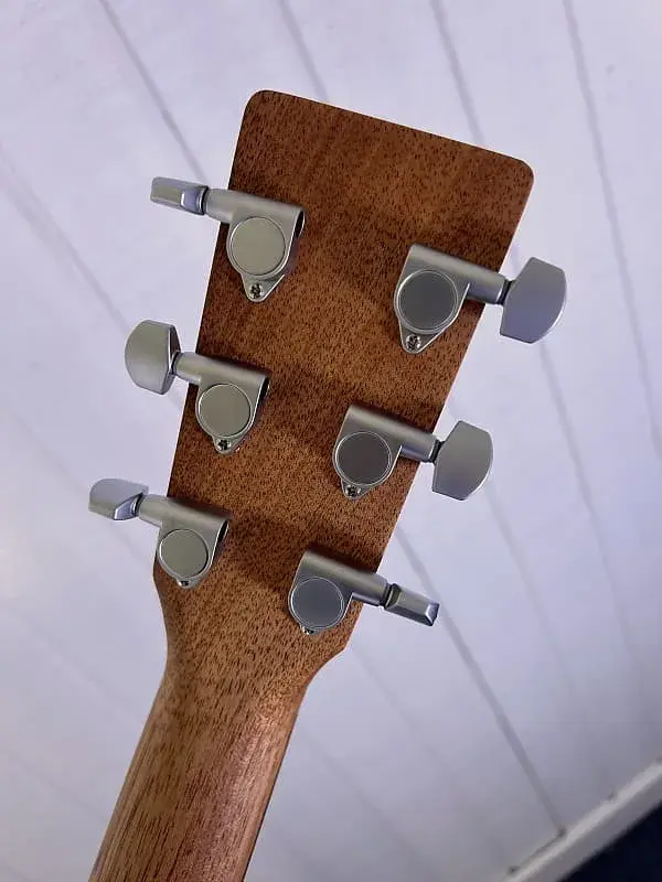 Головка грифа Форма головки: цельная Колки: хроматированный сатин с закрытой тягой Материал накладки головки: Cocobolo HPL Ручка: малая Стиль логотипа на накладке головки: рукописные чернила Материал верхнего порожка: белый Corian Материал крепления головки: Нет Детали головки: Нет