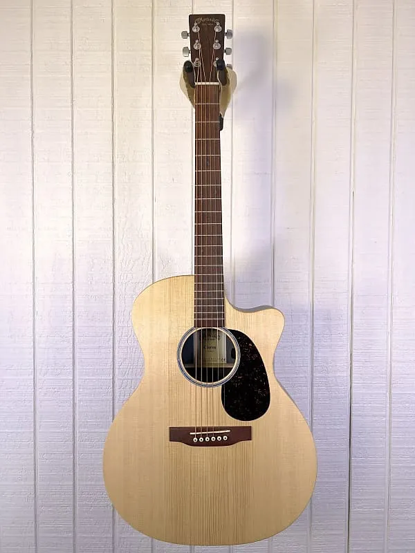 Обзор Рекомендуемые струны: Authentic Acoustic Lifespan 2.0 Гитарные струны Фосфористая бронза - легкая Размер корпуса: GPC-14 Лад Отделка столешницы: Сатин вручную натертый вручную сатин Конструкция: Паз и шип Соединение грифа Задняя и боковая отделка: Атлас Узор крепления: X-образный упор Длина мензуры: 25,4 дюйма Форма распорки: Фестопированный Ширина грифа у порожка: 1 3/4 дюйма Материал верха: Ель Форма грифа: профиль PA Материал спины: Cocobolo HPL Конус грифа: высокопроизводительный конус Материал боковой части: Cocobolo HPL Электроника: Martin E-1 Варианты электроники: Fishman MX